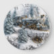 A vintage steam train puffs white clouds of steam as it navigates through a breathtaking snowy landscape. Surrounded by tall pine trees and steep cliffs, the scene captures the beauty of winter and the nostalgia of historic travel in the mountains.