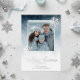 Send warm wishes this holiday season with our elegant snowfall ombre photo Christmas card. This stunning design features a beautiful gradient background, transitioning from deep winter blues to a soft, frosty white, accented with delicate falling snow. Your cherished family photo takes centre stage within a crisp silver foil frame, flanked by sophisticated silver-foiled snowflakes. The classic "Merry Christmas" script adds a touch of timeless charm. Easily personalise with your family's name and photo for a truly unique and memorable holiday message. Perfect for families, couples, or anyone celebrating the winter holidays. Created by Simply Farmhouse Press.
