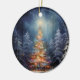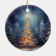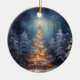 Wish your loved one a Merry Christmas with this magical Snowy Night Christmas ornament. Decorate your tree this year with this exquisite Christmas Tree, lighting up the forest, surrounded by white pine cone trees and a snowy night feel.