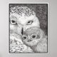 This is a pen and ink drawing of a Snowy Owl and her baby, by Daniel Radcliffe. Customize this print by changing the size or poster type to meet your needs, or leave as shown.