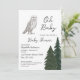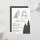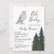 Snowy owl illustration gender neutral winter baby shower invitation.