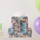 Colourful wrapping paper adorned with adorable owls in Santa hats, surrounded by Christmas gifts and wintery decorations, bringing a joyful holiday spirit to any present.