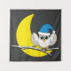 An illustration of a snowy owl on a bare branch with a blue bonnet in a new moon winter night. In movies, owls are usually the wizard's friend and present on any magical film. This cute cartoon arctic owl is resting and ready to sleep on his favourite branch. The design is made for owl lovers, bird lovers and winter lovers. It is also an ideal design for decorating your children's bedroom. Christmas season is a season for sharing and gift giving, are your gifts ready?