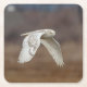 Snowy owl in flight square paper coaster