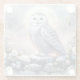 Snowy Owl in Moonlit Winter Garden Glass Coaster