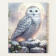 A majestic snowy owl perches gracefully on a frost-covered stone wall, illuminated by the soft glow of a full moon. Surrounded by delicate pink and white roses dusted with snow, this enchanting scene evokes a sense of quiet wonder and mystical beauty. The artwork blends elements of winter fantasy art and romantic gothic nature, where ivy and bare winter branches frame the central figure in a dreamy winter setting. The owl’s serene gaze and finely detailed feathers bring a lifelike elegance to this magical bird artwork. Ideal for those who appreciate ethereal wildlife design and enchanted forest animals, this moonlit owl scene feels like a page from a fairytale. The subtle colour palette of icy blues, pale blush, and gentle shadows enhances the dreamlike quality of the image, perfect for creating a calming and visually striking atmosphere. AI generated artwork.