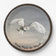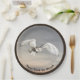 A digital rendering of a Snowy Owl (Bubo scandiacus) superimposed on a wintery, grey sky background. Add your own text.