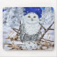 Snowy Owl Perched in Winter Wonderland With Snow Mouse Mat