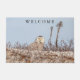 Snowy owl sitting on the beach doormat