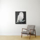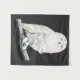 An illustration of a snowy owl perched on a branch. This cute owl is drawn in a distressed style.