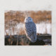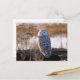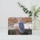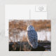 Photo of a snowy owl winking. The owl is sitting on a piece of driftwood on the beach surrounded by dried vegetation. This owl picture can be customised with your own text in the typestyle of your choice.