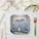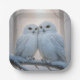 Two magnificent snowy owls gracefully perched on a winter branch, bathed in the warm glow of sunlight