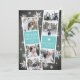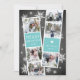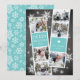 Cute holiday photo card features two photo booth strips, each with three photos and a vibrant icy turquoise text panel, for a total of six photos. Personalise with the year and your family name or names in whimsical, festive white lettering, on a rustic chalkboard background dotted with hand drawn white snowflakes.