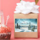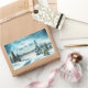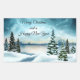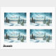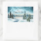 Snowy pine trees near a lake rectangular sticker