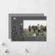 A modern and elegant Christmas holiday card design featuring a horizontal photo on a charcoal grey background adorned with pine trees laden with snow and topped with white stars. Personalise with your custom holiday greeting, family name and the year.