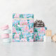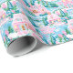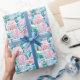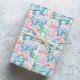 Snowy Pink and Blue Christmas Gingerbread Town Wrapping Paper