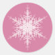 An intricately illustrated snowflake on a delicate pink background adorns this sticker. It can easily be customised to different sizes and is perfect for envelope seals, or party favour decorations.