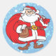 Snowy Santa and his big bag of gifts Classic Round Sticker