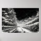 This black and white artwork captures the stillness of a winter night in Japan,