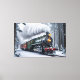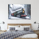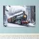 A Winter Wonderland artwork capturing a snowy train travelling through a picturesque winter wonderland.
