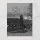 Dry brush rendering of a photo of my Golden Retriever peering out over Bow Bridge in Central Park during a snow storm. The New York City skyline can be seen in the distance.