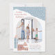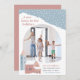 A cosy holiday moving announcement card with cute hygge vibes, featuring a snowy Christmas village scene. "A new home for the holidays" appears in retro lettering. Personalise with your new address and family name at the bottom, along with a family photo or a pic of your new house.