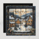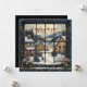 Snowy Village Window Scene with New Year Greeting Holiday Card