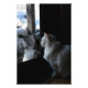 Fluffy snowy white kitty sitting in the doorway watching the snow pile up and catching a glimpse of his own reflection. This loveable little guy is named "Klondike". Photographed by Black Brook Photography December 2013.