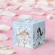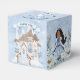 This adorable snowy winter Princess favour box features a snow castle and beautiful young African American princess wearing a blue and white snowflake gown and warm fur lined cape. The princess is surrounded by poinsettias. You can personalise with the special birthday princess's name and age!