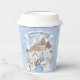 This adorable snowy winter Princess paper cup features a snow castle and beautiful young princess with brown hair wearing a blue and white snowflake gown and warm fur lined cape. The princess is surrounded by poinsettias. You can personalise with the special birthday princess's name!