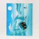 While away a relaxing afternoon with this charming, festive jigsaw puzzle! Featuring a snowy log cabin in the woods, a forest of fir trees, and a cute little snowman, the nostalgic design will delight and entertain. In tones of blue and turquoise. Just the dose of magic you need this winter season, this fun puzzle is great for kids and adults alike. A perfect Christmas gift!