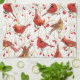 Snowy Winter Cardinals Winterberry Christmas Tea Towel
