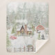 Snowy Winter Christmas Cabin Scene Sherpa Blanket