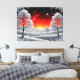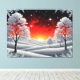 Snowy Winter Forest Under Red Sunset Canvas Print