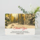 Thank you card with a beautiful nature photograph. An isolated winter path with tall snow covered pine trees. A golden twilight hue creates a magical feel to this photo.