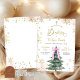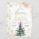 Christmas Tree Pink Bow Christening Girl Baptism, Winter Snowy Water Girl Baptism Invitation, Gold Snowflakes Forest Holiday Baptism