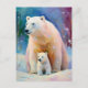 A modern art painting of a polar bear mama and cub nestled together in a snowy arctic landscape, featuring soft brushstrokes, gentle lighting, and a serene winter atmosphere. This heartwarming wildlife artwork captures the tender bond between mother and baby, making it perfect for greeting cards, nursery prints, seasonal décor, and meaningful gift items. Its peaceful palette and expressive style appeal to nature lovers, families, and anyone looking for a touching winter-themed design for Christmas or year-round gifting.