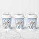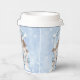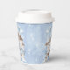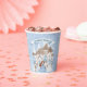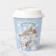 This adorable snowy winter Princess paper cup features a snow castle and beautiful young princess with red hair wearing a blue and white snowflake gown and warm fur lined cape. The princess is surrounded by poinsettias. You can personalise with the special birthday princess's name!