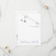 The impending winter might be a source of inspiration for your wedding. After an exciting day on the slopes, one can find solace in the warmth of a mountain chalet during this wonderful season, which is celebrated in the Snowy Winter Ski Newlywed Couple Black White save the date card. We are taken to this pure and revitalising atmosphere by Amour Paperie's endearing and beautiful illustrations. A happy couple celebrating their union in this wintry setting is framed by a magnificent mountain range in the distance. This save the date card's two pages reveal a poetic story that enthralls you as you read it. This sweet tale will surely touch your family and friends, and they will be overjoyed to hear the news.