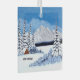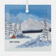 A holiday ornament with a beautiful winter scene including snow covered mountains, evergreens and rustic cabin. The images and text can be customised, replaced or deleted. Original artwork by W.B.