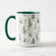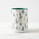 Snowy wintergreen and brown trees seamless Christmas pattern. Gold typography Joyeux Noel.