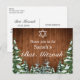 Bat Mitzvah postcard invitation. Rustic brown wood, snowing background and snowy forest. Cosy vintage country style. More items are available in this style in our store. You can edit the design further, change colours, fonts and add extra text by clicking "customise further" link.