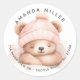 Cute snuggle bear Baby Shower address label Sticker for a girls baby shower and a birth announcement.
