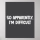 So Apparently, I'm Difficult - Funny Sarcastic Poster