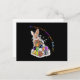 So egg-cited I just can’t hide it! Curious, cute and funny Easter Bunny or Easter Rabbit peeking behind a pile of painted decorated or ornate Easter Eggs for Easter Egg Hunt with pun phrase