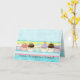 Cupcakes are cool and a very popular way to celebrate special occasions. This note card is set up for business communications, simply put your company name on the cover and if you wish, add you contact information to the interior. Hand painted, border with decorated cupcakes by Audrey Jeanne Roberts adds its colourful whimsy to this invitation. In shades of blue, pink and lime green, and with chocolate and vanilla cupcakes they'll make your mouth water! YOU MIGHT ALSO ENJOY: BRIDAL SHOWER INVITATIONS: