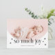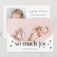 Rustic and elegant holiday birth announcement card with 2 photos of your newborn featuring a white arch frame with text that says "so much joy" with stars around.