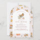 Celebrate your little pumpkin on the way with this cosy and whimsical autumn baby shower invitation. Designed with a soft blush background, arched frame, and hand-painted watercolor illustrations — including a friendly turkey, pumpkins, florals, and adorable farm animals — this invitation brings warmth and charm to your fall gathering. The perfect pick for Thanksgiving showers or November moms-to-be, this card sets the tone for a heartfelt, seasonal celebration. Easily personalise with your event details and shower your loved one in gratitude and joy.