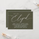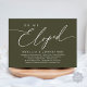 Mark the beginning of your forever with elegance using our romantic contemporary rustic olive green theme wedding elopement happily ever after lunch, brunch, reception dinner party celebration invitation card, "So, We Eloped". Perfect for couples extending their joyous occasion, this invitation exudes sophistication with a hint of playfulness, setting the stage for a memorable event. Adorned with a timeless modern script design theme, it adds a touch of refined charm to your festivities. Crafted by TeeshaDerrick, this invitation promises to beautifully capture your love story.