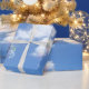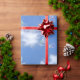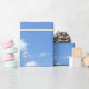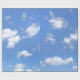 Iridescent soap bubble pattern on blue sky with white fluffy clouds